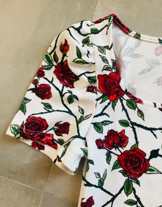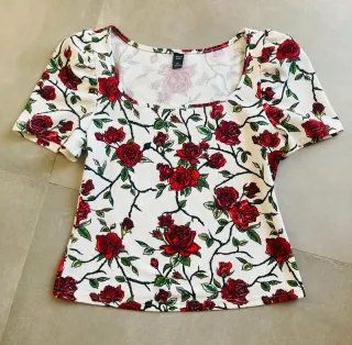 Camiseta SHEIN floral roja y blanca talla XL