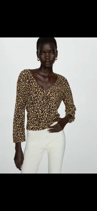 🔴PRECIO NO NEGOCIABLE (Me costó 22,95€). Camiseta MANGO Animal Print. Talla XL. Medidas aprox: axila a axila 52,5, largo 61, sisa 48 y manga 65. 100%Poliester. Es elástica. Mangas abullonadas. No tiene etiqueta pero no recuerdo haberlo estrenado. Tonos marrones, negros, beige. En mano: Metro San Francisco Zona Carabanchel. Línea 11