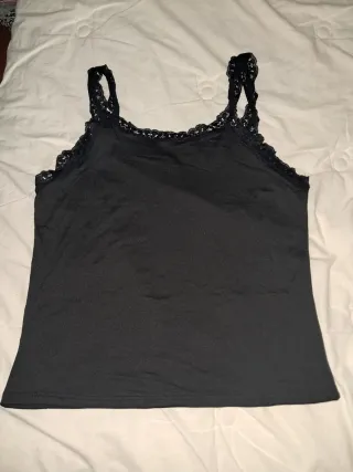 Camiseta de tirantes con un bonito acabado. Diseño con tirantes. Detalle de encaje en el escote y los tirantes. Talla XL. Esta en perfecto estado