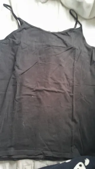 Blusa de tirantes finos regulables, negra, talla XL. Medidas: Ancho 54cm Largo 70cm Nueva a estrenar