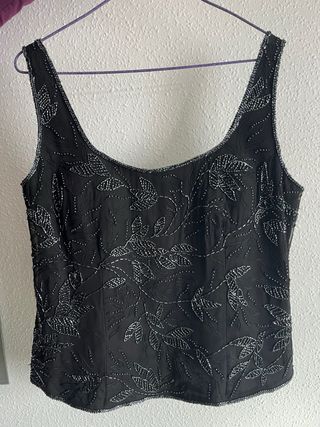 Elegante blusa sin mangas con un diseño de pedrería. Talla XL - Detalle de hojas y ramas bordadas con pedrería. - Tirantes finos. - Acabado con pedrería en el bajo.
