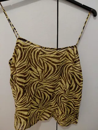Blusa con estampado de cebra en tonos amarillos y marrones. - Diseño con tirantes finos. - Tejido ligero y vaporoso. Vale para talla L - 40
