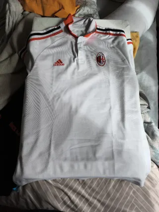 Polo oficial del AC Milán de la marca Adidas. Diseño deportivo con detalles en cuello y mangas. Futbol vintage. - Logo de Adidas bordado. - Escudo del AC Milán bordado. - Cuello tipo polo con botones.