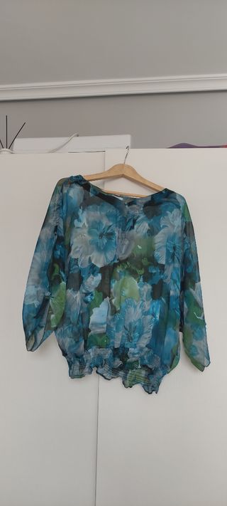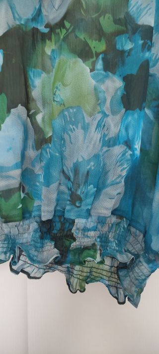 Blusa estampada de flores de mujer. Nueva. La blusa no marca la talla pero es para talla 54 o 56. Hace corte en la cadera, por lo que queda suelta. Lo mismo ocurre con el frunce del pecho. Medidas: -sisa: 64cm -cintura: 64cm -cadera: 70cm -largo: 68 cm #tallagrande #bigsize #tallaespecial #curvy #modacurvy #curvysize #specialsize