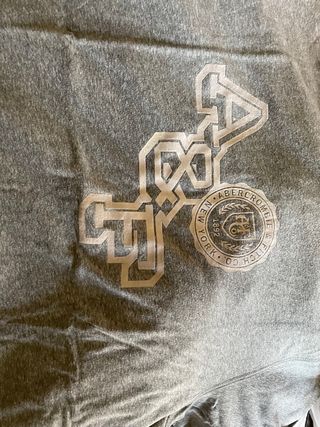 Camiseta negra de manga corta. Estampado blanco en la parte delantera de corona y número. Algodón. Sin estrenar, con etiqueta Talla XL: largo 70 cm, ancho 48 cm