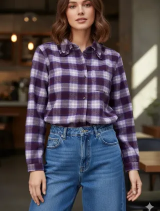 Camisa de franela a cuadros morada