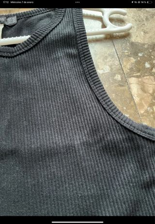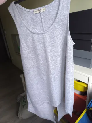 Camiseta sin mangas de tejido ligero y cómodo. Camiseta inside talla XS/S Envío rapido Poco uso en perfecto estado Tiene efecto brillo Con raja en centro de la espalda