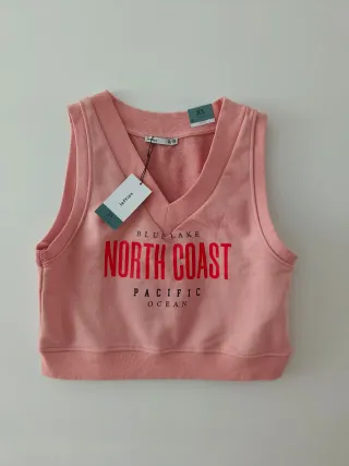 Camiseta sin mangas tipo chaleco en color rosa pastel. Diseño moderno y juvenil. - Cuello en pico. - Bajo elástico. - Estampado North Coast Pacific Ocean en contraste.