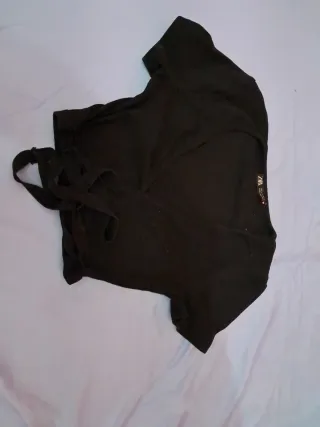 Camisa negra de Zara con un diseño elegante de escote cruzado. - Manga corta. - Cierre con lazada. - Tejido suave y cómodo.