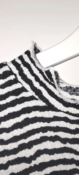 A ESTRENAR!!!! Camiseta con un diseño de rayas horizontales en blanco y negro. Es una prenda cómoda y versátil. - Tejido con textura. - Corte moderno. Es tipo gasa sin ser transparente, muy bonita para llevar por fuera o por dentro.