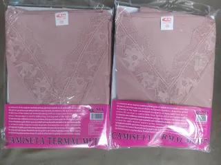 Pack de dos camisetas térmicas para mujer. - Cuello pico. - Interior afelpado. - Detalle de encaje. - Composición: 100% algodón. - Talla: 60. Corresponde a la XL