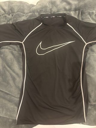 Camiseta térmica de manga corta con diseño deportivo. - Logo de Nike en contraste. - Ribetes blancos en mangas y costados.