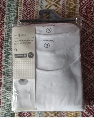 Pack de tres camisetas básicas de manga larga, miden 38.5 cm de ancho y 68 cm de largo. Pone G pero vienen pequeñas, el tejido es muy agradable y gustoso. Se venden juntas por 15€ - Composición: 100% algodón. - Fibra térmica.
