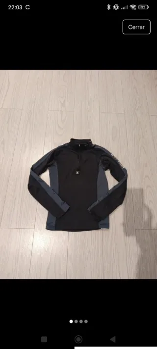Camiseta térmica de manga larga con un diseño deportivo. Calienta muchísimo, ideal para esquiar o temperaturas muy frías en el monte. Tejido técnico transpirable tegida según la zona del cuerpo. Tiene un poco de pelusa por el roce con mochilas etc. (Fotos 3 y 4).