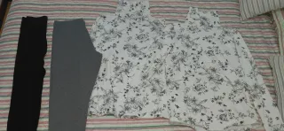 Conjunto de ropa térmica para mantenerte abrigado. Incluye 4 prendas. - Pantalón largo negro. - Pantalón largo gris. - 2 camisetas de manga larga con estampado floral.