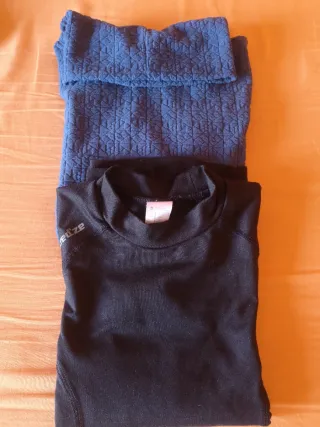 Conjunto de dos camisetas térmicas de la marca Quechua. Talla 8 años. Cada una 4€ - Una camiseta de color negro. - Una camiseta de color azul cuello alto