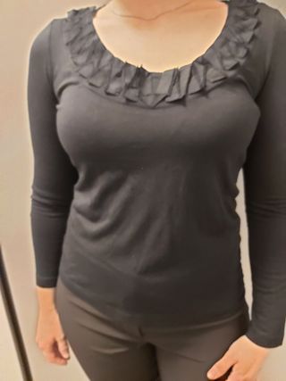 camiseta negra manga larga cuello redondo adorno cuello delantero talla s pero da más talla (38 . Perfecto estado