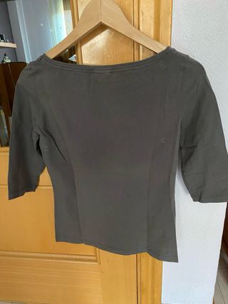 camiseta verde. talla 40 equivalente a una M.