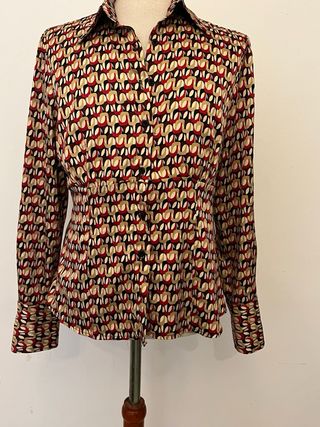 Camisa vintage estampada en tonos tierra. - Manga larga. - Cuello camisero. - Cierre de botones dorados.