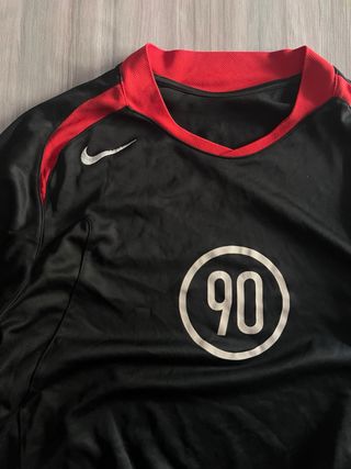 Camiseta vintage de hombre con un diseño llamativo. - Cuello y detalles en rojo. - Logo de Nike en blanco. - Número 90 en un círculo blanco en el pecho.