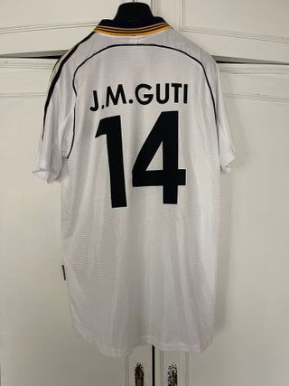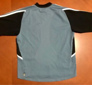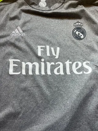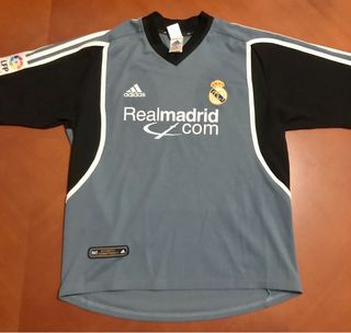 Camiseta del Real Madrid edición especial Real Madrid.com para patrocinar la web del club en el año 2000/2001 cuando todavía no había grandes patrocinios en las camisetas y comenzaba el tema de las paginas web e internet en el mundo del fútbol ..fue la unica temporada que se lucio esa publicidad de realmadrid.com para promocionar la web del club. Se ven muy pocas unidades como está y es muy valorada por coleccionistas . - Diseño con mangas negras y cuerpo gris. - Logo de Adidas y escudo del Real Madrid. - Detalle de Realmadrid.com en el frontal. - Estilo retro - Envio disponible - Buen estado - Camiseta original Adidas