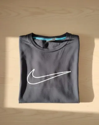 Camiseta de manga corta con el icónico logo de Nike. - Color gris jaspeado. - Logo de Nike en color morado. - Cuello redondo.
