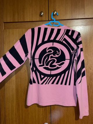 Camiseta noventera con diseño tribal en la parte delantera. Color calabaza. Manga larga. Las mangas en color blanco superpuestas. Como si llevases otra camiseta. Cuello redondo fino. Talla XL. Os pongo las medidas de todas formas : Anchura 58 centímetros ( de axila a axila) Largo 68 centímetros. Camiseta vintage. Poco uso.
