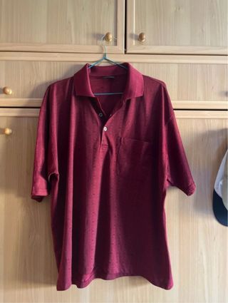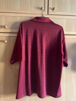 Polo de estilo vintage en color granate de Fuwangtian. Presenta un diseño clásico con cuello y botones. - Cuello tipo polo. - Bolsillo en el pecho. - Ancho: 58 cm - Largo: 67 cm