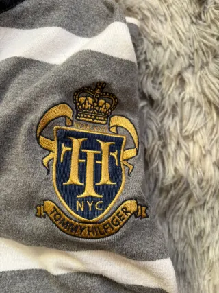 Polo de manga larga de la marca Tommy Hilfiger con un diseño a rayas. - Cuello tipo polo con botones. - Detalle de escudo bordado en el pecho. - Diseño a rayas grises y blancas.