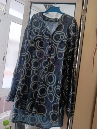 Blusa vintage con estampado de loros para ir a la playa (tipo vestido) se vende porque no se utiliza. Buen estado. Es muy amplia. 82 cm de axila a axila y 86 cm de largo.