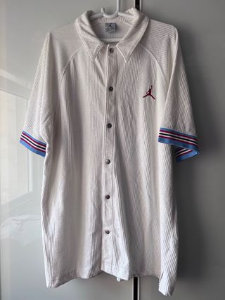 Chaqueta Jordan vintage de los años 90 en algodon muy suave, tejido muy especial, logos bordados, botones metalicos , estado como nuevo, sin manchas ni agujeros, color blanco intenso. Talla L muy grande 60cms entre axilas 82 cms de largo desde hombro air jordan nba nike bulls all star vintage champions starter salem nutmeg dream flight legendary spalding blacktop streetball elephant print basket baloncesto sneaker og spike magic bird sport specialties just do it jumpman air force carolina force