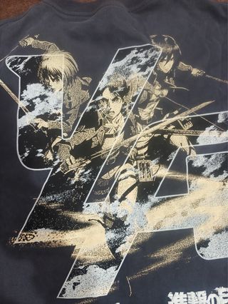 Camiseta YoungLA x Attack on Titan (AOT) - Modelo The Trio - Oversize XL Descripción: Vendo camiseta exclusiva de la colaboración oficial entre la marca fitness YoungLA y el anime Attack on Titan (Shingeki no Kyojin). Es una prenda difícil de conseguir (sold out en la web). Detalles de la prenda: Modelo: "The Trio" (YLA3179). El diseño de la espalda presenta a los tres protagonistas: Eren Jaeger, Mikasa Ackerman y Armin Arlert integrados en el logo de YLA. Talla: XL (Corte Oversize / holgado, estilo "boxy fit"). Color: Azul grisáceo con efecto lavado (Vintage wash / Slate Blue). Material: 70% Algodón, 30% Poliéster. Es una tela de t