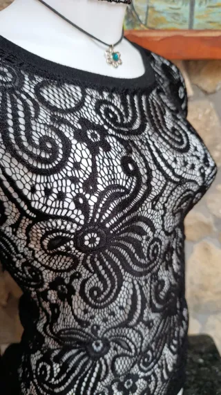 Este top transparente es una pieza única con un estilo Y2K. - Diseño de cuello alto. - Mangas largas. - Tejido semitransparente. SOLO ENVIOS