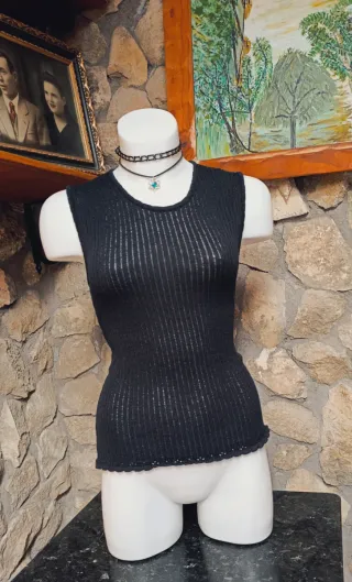 Top de punto con un estilo vintage Y2K. - Diseño de canalé vertical. - Acabado festoneado en el bajo. SOLO ENVIOS