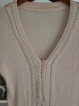 Body de manga larga con un diseño elegante y detalles en el escote. Escote en V con adornos. Cierre de botones. Tejido suave y elástico.