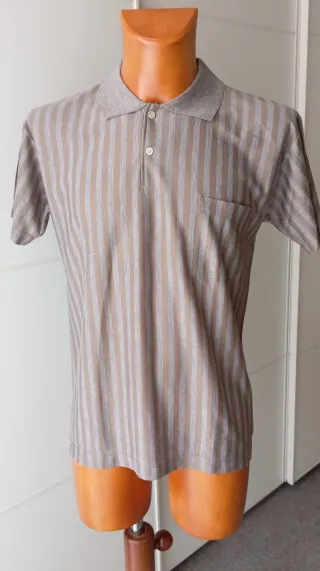 Polo vintage color gris y marrón . Polo, camiseta de hombre Manga corta. Bolsillo. Nuevo a estrenar. Talla M aproximadamente, sí tienes dudas consulta las medidas. MANIQUÍ ; 95 PECHO contorno 77 CINTURA contorno 95 CADERA contorno ✨❤️ MEDIDAS ❤️✨ Largo 68 cm Sisa, ancho del axila a axila 54cm Hombro a hombro 50cm.