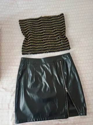Top de fiesta, palabra de honor. Muy elástico, admite una L. Es vintage, de mi madre pero no tengo la etiqueta interior, marca Tintoretto de El Corteinglés. Se aprecia en el tejido y en la composición. - Tejido con lentejuelas doradas y negras. - Diseño de rayas horizontales. Perfecto estado.