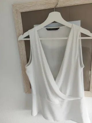 Camiseta básica de Zara, perfecta para cualquier ocasión. - Diseño sin mangas. - Cuello redondo. - Tejido suave y cómodo.