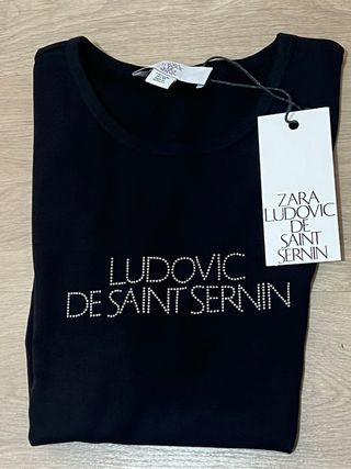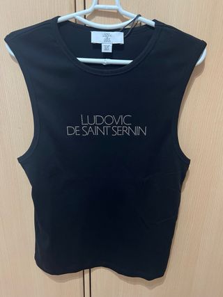 Camiseta sin mangas de Ludovic de Saint Sernin, colaboración con Zara. Presenta un diseño con el nombre de la marca adornado con pedrería. - Detalle de pedrería en el frontal. - Corte sin mangas.
