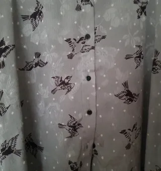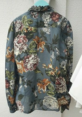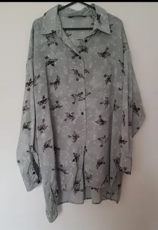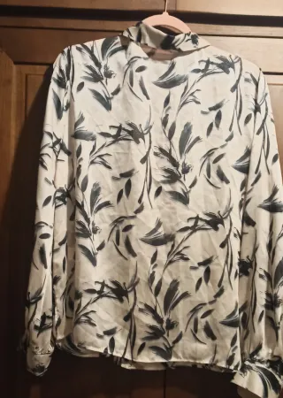 Camisa de Zara con un bonito estampado de pájaros y hojas. Es una prenda ligera y fluida, perfecta para un look casual. - Diseño con cuello y botones. - Mangas largas. - Estampado all-over de pájaros y puntos blancos.