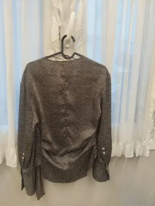 Elegante blusa de Zara con un estampado de lunarescrudos sofre fondo Marron - Diseño cruzado. - Mangas largas con puño con opción de llevar doblado - Detalle de lazada.