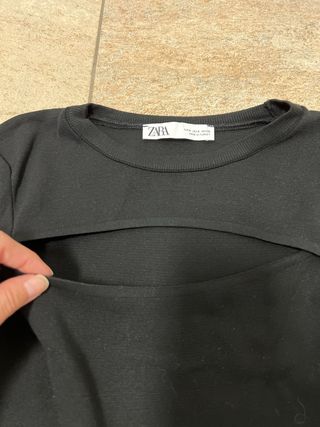 Camiseta básica de Zara, perfecta para combinar. - Corte crop top. - Manga corta. - Cuello redondo.