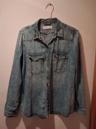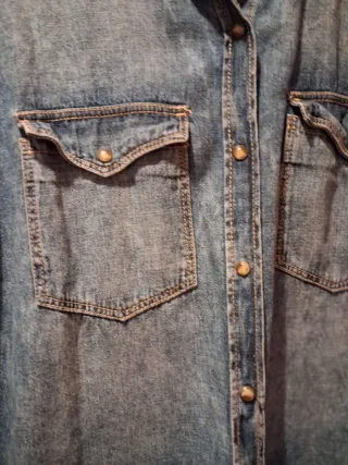 Camisa vaquera de la marca ZARA, con un diseño clásico y moderno. - Color azul con efecto desgastado. - Dos bolsillos en la parte delantera. - Cierre de botones. - Cuello camisero.