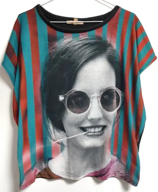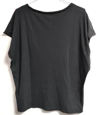 Camiseta original ZARA para mujer. Estampado grande estilo artístico, muy llamativa. Tejido ligero, cómoda para uso diario. • Talla: M • Marca: Zara • Color: negro con estampado multicolor • Estado: bueno, sin roturas ni manchas visibles Lista para enviar.