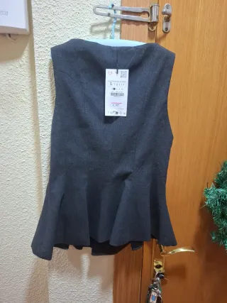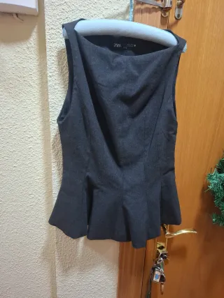 Top elegante de Zara con un diseño moderno. - Color gris oscuro. - Corte peplum. - Sin mangas. - Cuello cuadrado.