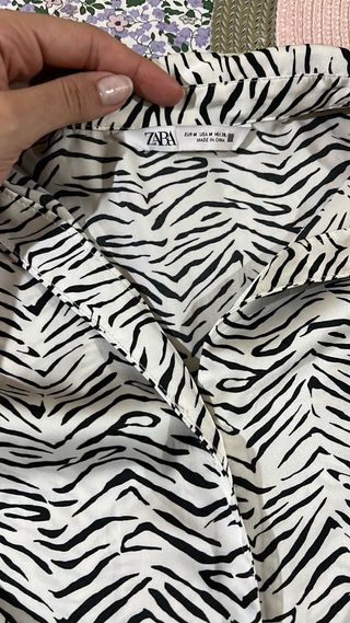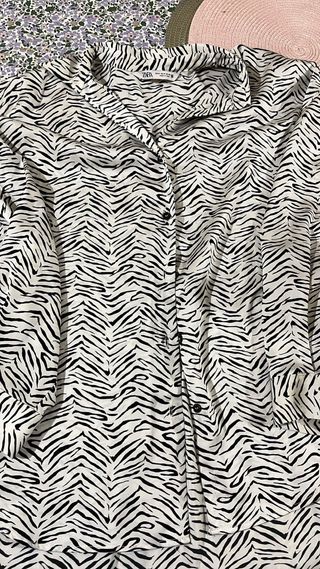 Camisa con estampado animal print. - Diseño de Zara. - Combinación de colores beige y negro.