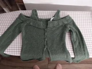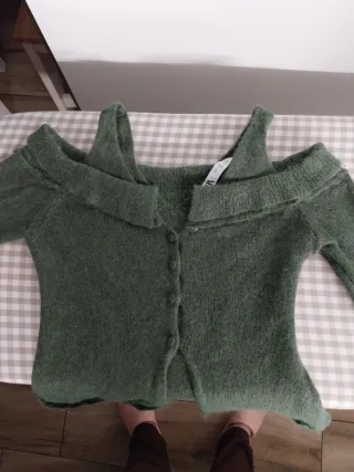 Este top de Zara es perfecto para un look moderno y cómodo. Su diseño de hombros descubiertos le da un toque especial. - Tejido de lana suave. - Cierre de botones. - Diseño de hombros descubiertos.