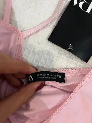 Body de la marca Zara en color rosa. - Diseño con tirantes finos. - Escote pronunciado. - Corte de pierna alto. Sin estrenar, con etiqueta