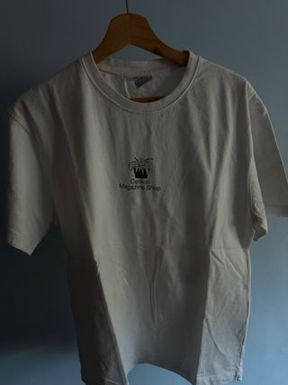 Camiseta básica de manga corta con un pequeño estampado en el pecho. - Estampado de planta y texto Central Magazine Shop. - Cuello redondo.