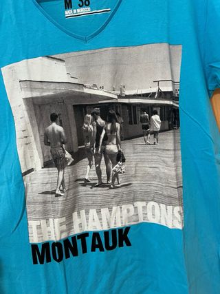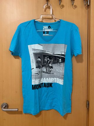 Camiseta de color azul con una foto en blanco y negro de Zara. Talla M de hombre. Tengo más camisetas, si se hace pack hago descuento.